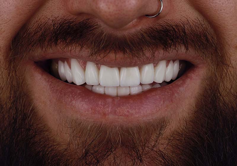 Пациенту установлены виниры из керамики E-Max во фронтальную зону на обе челюсти.