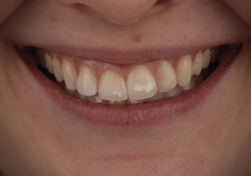 Пациентка обратилась с жалобой на неудовлетворительную форму зубов и дисколорит. Перед началом лечения проведена HD-консультация и выполнено цифровое моделирование для показа будущего результата. В ходе лечения были изменены положение, формы и цвет зубов. Установлено 10 керамических виниров E-MAX цвета блич (Bleach).