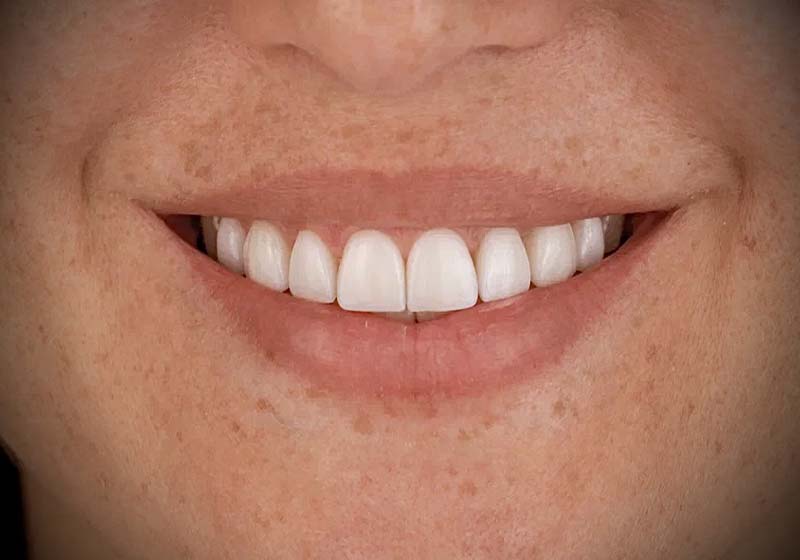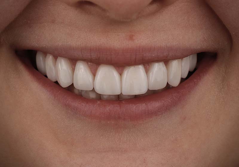 Пациенту были изготовлены и установлены 10 керамических реставраций E-max на цементной фиксации. В результате восстановлена эстетика и форма зубов.
