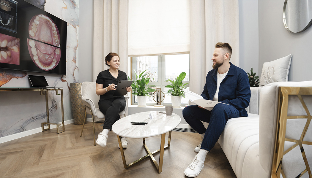 Любой прием у терапевта начинается с расширенной диагностики. Благодаря возможностям клиники, она осуществляется в формате HD-консультации. В рамках консультации, благодаря КТ-снимкам и фотопротоколу пациент на большом экране наглядно видит все моменты,требующие особого внимания. Если того требует клинический случай, стоматолог-терапевт привлекает к расширенной диагностической консультации дополнительных специалистов, таких как стоматолог-ортопед или хирург-имплантолог.