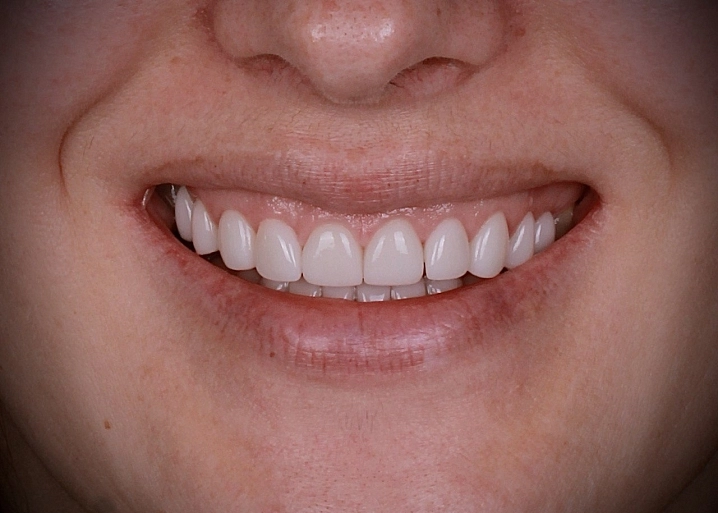 Пациенту были изготовлены и установлены 10 керамических реставраций E-max на цементной фиксации.