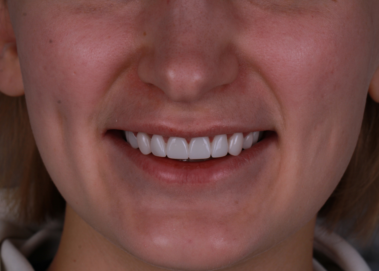Пациенту были изготовлены и установлены 10 керамических реставраций E-max на цементной фиксации. В результате восстановлена эстетика и форма зубов.