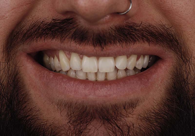 Пациенту установлены виниры из керамики E-Max во фронтальную зону на обе челюсти.