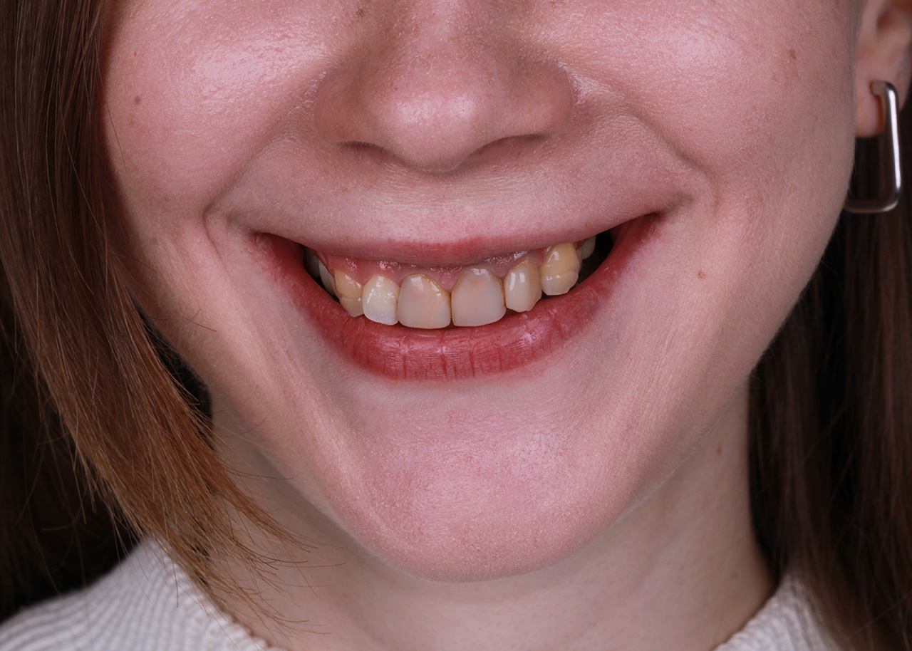 Пациентка обратилась с жалобой на неудовлетворительную форму зубов и дисколорит. Перед началом лечения проведена HD-консультация и выполнено цифровое моделирование для показа будущего результата. В ходе лечения были изменены положение, формы и цвет зубов. Установлено 10 керамических виниров E-MAX цвета блич (Bleach).